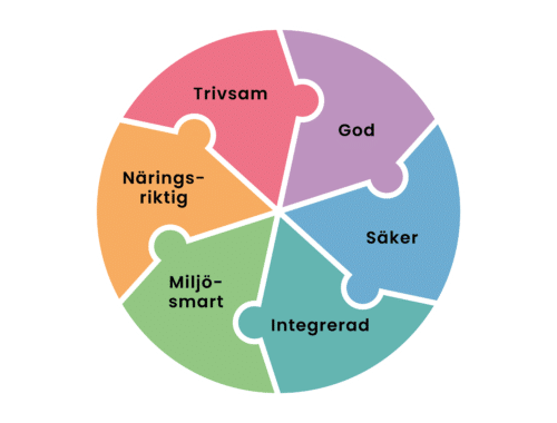 Modellen består av sex pusselbitar som alla är viktiga för att de offentliga måltiderna ska skapa matglädje och bidra till hållbar utveckling.